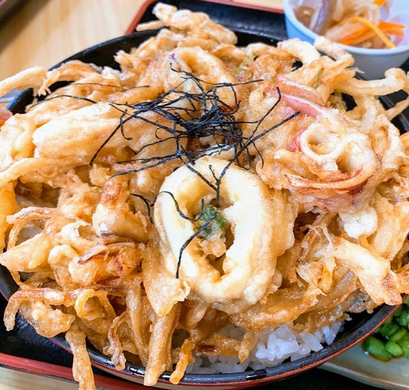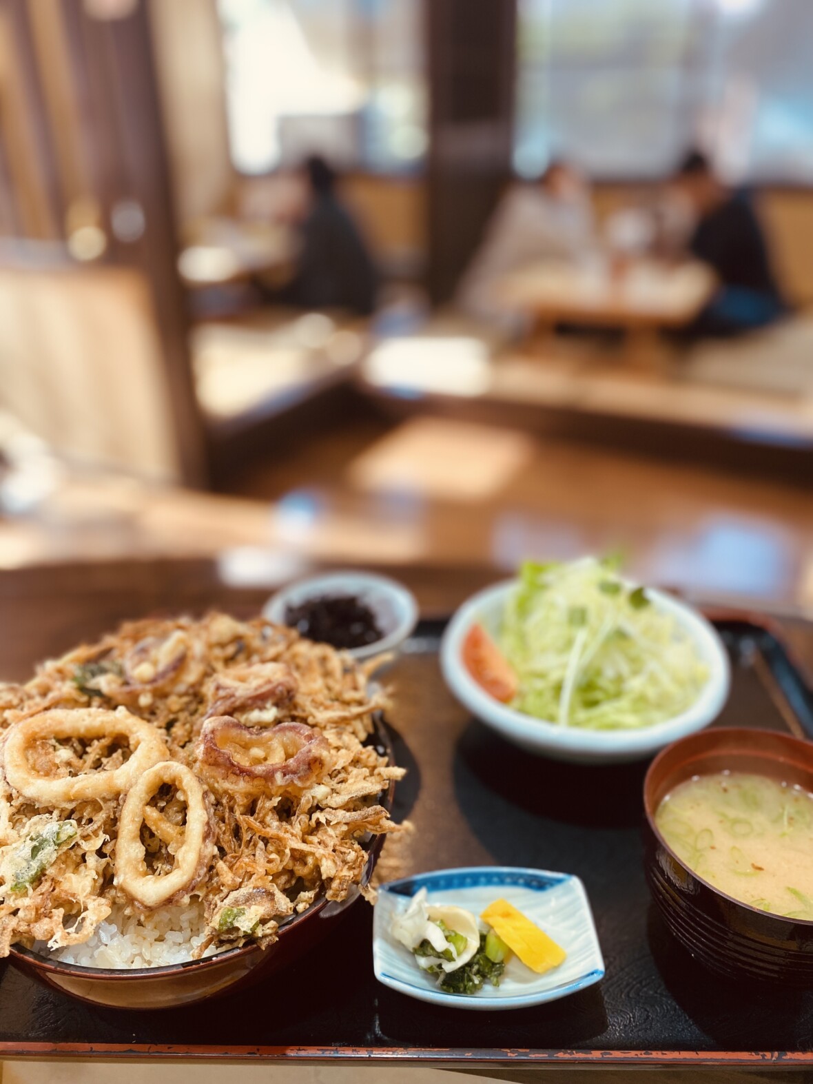 2種類のイカ🦑(マイカ・アオリイカ)を使用したかき揚げ丼の定食です!